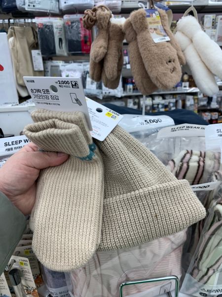 다이소에서 2천원짜리 비니랑 2천 원짜리 장갑 샀어요 ㅎㅎㅎㅎ; ㅎㅎㅎㅎ; 2천원인데 따뜻해용 응..