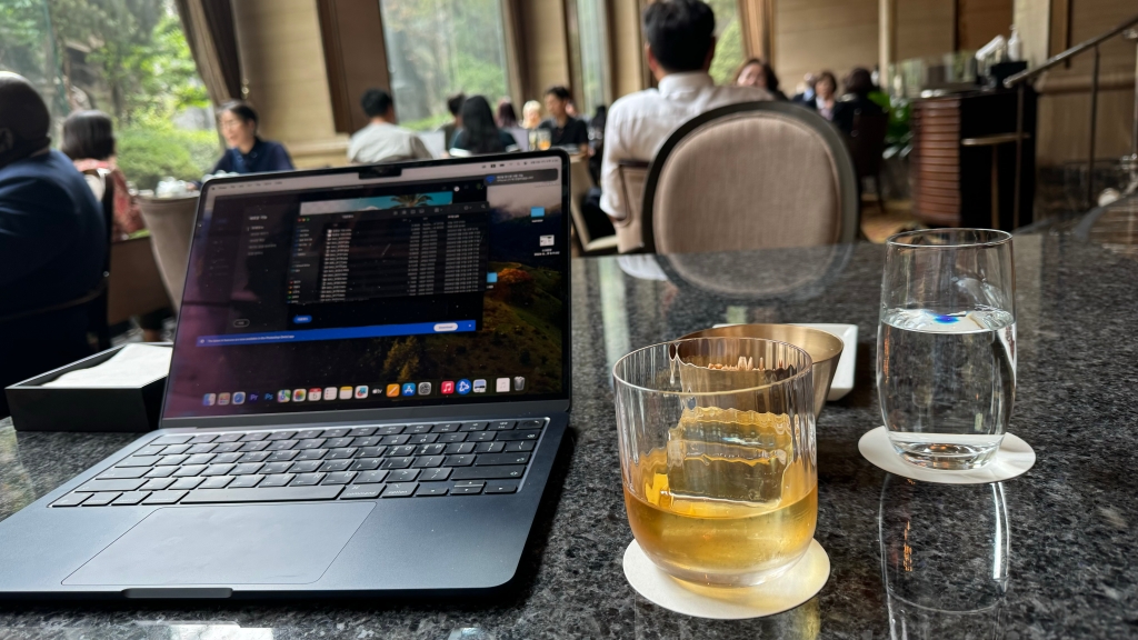 그래서 이렇게 앉아서.. 위스키 시키고.. 작업 시작하는데..