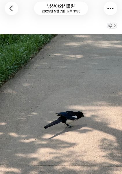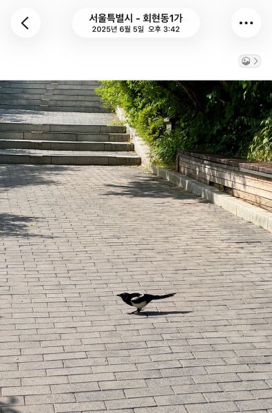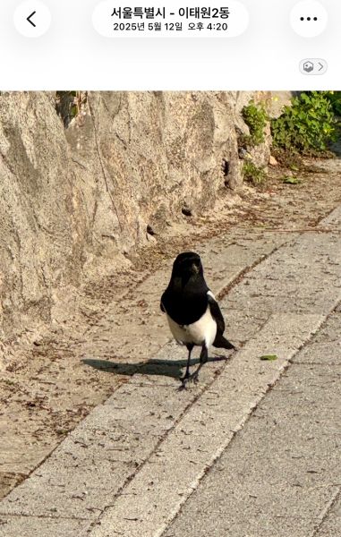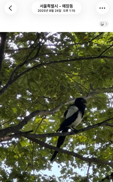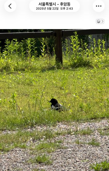 이 사진도.. 일주일만에 또 다시 보이는 까치인데.. 복슬이 같아요.. 그런데 이때부터 애가 심상치 않아요.. 뭐가 심상치 않냐면.. 뭔가 아파보여요.. 까마귀랑 싸운 건지.. 남산이 까마귀 밭이거든요.. 까치보다 더 많아요.. 그런데 뭔가 기운도 없어 보이고 어딘가 다친 것처럼..