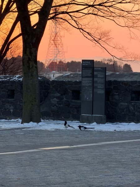 그런데 어느날 부턴가 얘도 성채가 되더니 지금은 슬림이를 만나서 잠두봉에 자리잡고 사는 거 같더라고요.. 자기의 구역을 만들어서.. 어느 날은 아주 가끔.. 두 마리가 더 같이 총 네 마리가 날아오던데.. 아이도 낳은 건지.. 여튼.. 결국 그렇게 몇 개월에 걸쳐서.. 어떻게 보면 복슬이는 위의 몇 개월간의 시간들이.. 그 시간이.. 까치 인생으론 7-8년은 될 거예요..